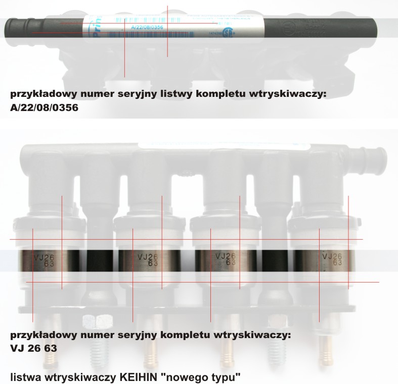 Przykład: umiejscownienie wymaganych numerów seryjnych wtyrskiwaczy LPG marki KEIHIN - sprawdź gdzie szukać numerów seryjnych – zdjęcia wtryskiwaczy nowego typu, starego typu
